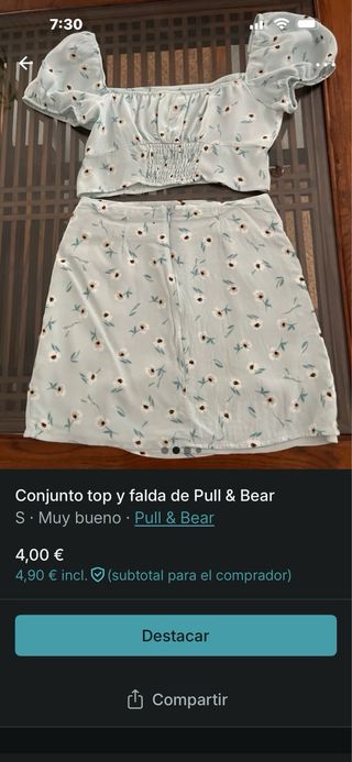 • De media, comprar Falda Pull and Bear en Wallapop es un 44% más barato que comprar este tipo de producto nuevo