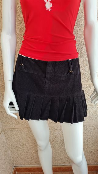 Falda corta de tablitas en color negro, el tejido es micropana. Talla 40 de Pull & Bear. En perfecto estado.