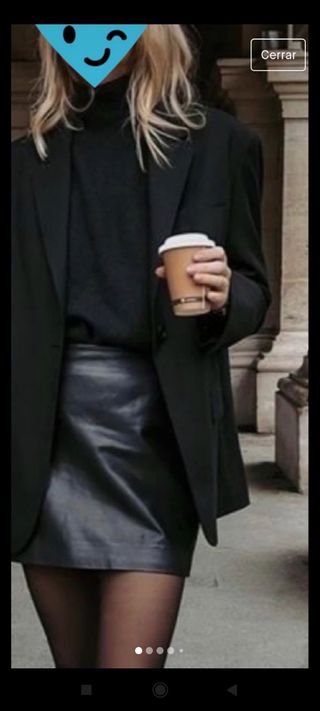 Minifalda cuero sintético negra, interior suave y cálido, cremallera invisible en el lado, dos bolsillos de adorno por delante y pinzas por detrás Pull & Bear, talla M. Largo 40 cm. Contorno de cintura 78 cm. Usada poquísimo está muy bien, casi nueva, le vi un desperfecto tiene por delante una marca, no sé si se le ha hecho de estar guardada sobre algo o de que es, no lo recuerdo. Cambié de talla por eso no la uso, es tendencia este invierno El tejido será poliuretano y poliéster, corté la etiqueta interior me molestaba. Más ropa en mi armario, si le interesa está prenda me escribe por si le puedo hacer oferta, gracias