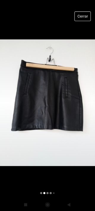 Minifalda efecto cuero negra Pull & Bear, talla M