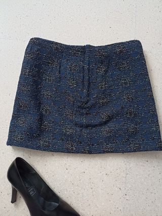 Falda corta talla M 38, con tonos azules, negros y burdeos. Muy buen estado Liquidación, hago rebaja por lote de artículos #falda #mini #minifalda #tweed #estampado #jaspeado #jupe #azul #blue