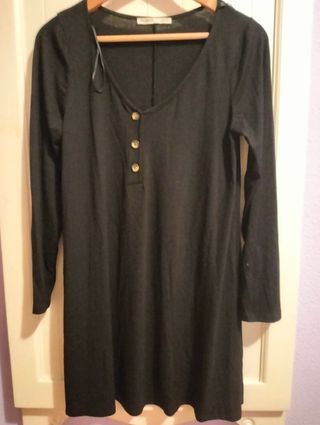Vestido de punto de manga larga con botones en el pecho. Falda acampanada. Sin apenas uso.