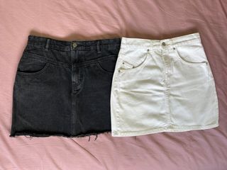 2 faldas vaqueras, 1 color negro y otra color blanco Perfectas condiciones Ideales tanto para verano con sandalias, como para invierno con medias y botas, son muy versátiles y pegan con todo Ambas son talla M