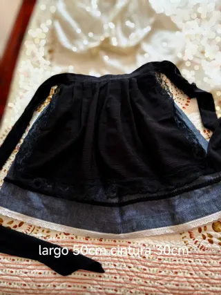 Falda regional de fallera con un diseño tradicional y elegante. - Delantal blanco con encajes. - Falda azul con detalles de encaje en el bajo. Cintura 70cm Largo falda 87cm tiene para sacar 12cm