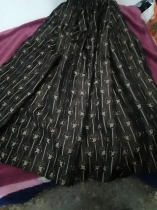 Falda de traje regional de Burgos, a estrenar. - Largo 103cm - Diseño largo y con vuelo. - Adornada con cintas doradas y detalles negros. - Cintura ajustable