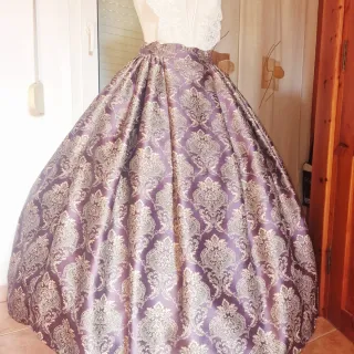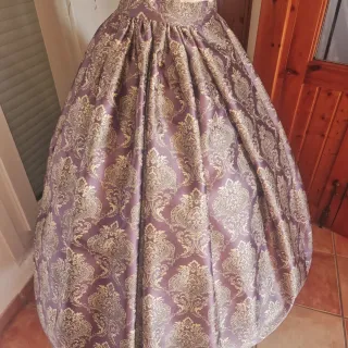 Falda de estilo fallero o regional, con un diseño llamativo. Damasco a dos colores. - Tejido con estampado damasquinado. - Corte amplio y voluminoso.
