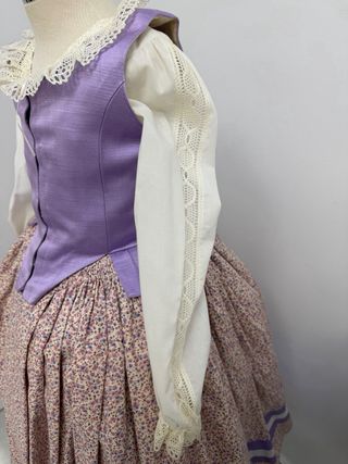 traje huertana completo niña 6-9 años medidas: - falda 73cm largo - cintura 70cm - ancho de pecho 40cm - justillo largo 47cm - camisa manga 47cm - delantal 56 cm sin lazos