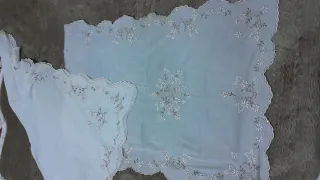 Manteletas de estilo huertana o a l'antiga, perfectas para trajes regionales. Se notan las marcas de los hilos en la parte superior, al haberlo descosido de la falda. - Diseño floral bordado. - Acabado festoneado en los bordes.