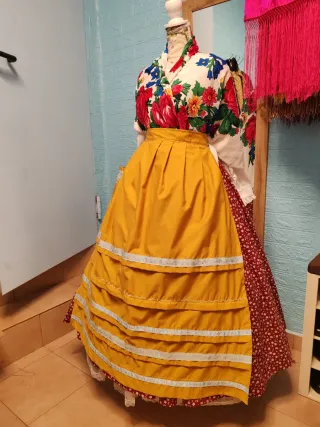 Preciosa saya y manton amplio de 140 de lado mas flecos de baturra. Falda con 6 metros de vuelo haldar fruncida de pañal Baturra regional indumentaria maña jotera fallera valenciana huertana Lotes y envío económico y Wallapop envíos también consulta sin compromiso también probar posibilidad de compra en esenciaregional.com con envio gratuito,