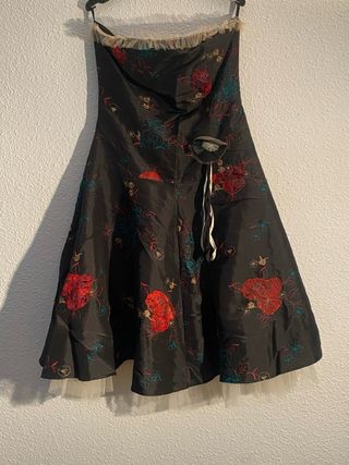 precioso vestido eventos nuevo solo una puesta Talla 44 Mercedes Romero....falda negra con brocado en el pecho