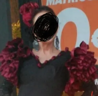 Conjunto de falda de sevillana con volantes y torera a juego. - Falda larga con múltiples volantes. - Torera corta con cierre de corchetes. - Cintura 84cm cadera 100cm y largo 90cm Falda de sevillana con torera haciendo juego,talla L,además regalo colín de la falda,es hecho a medida ,aunque tiene tela para ajustarse, la falda es de talle bajo,y el colín se puede poner y quitar