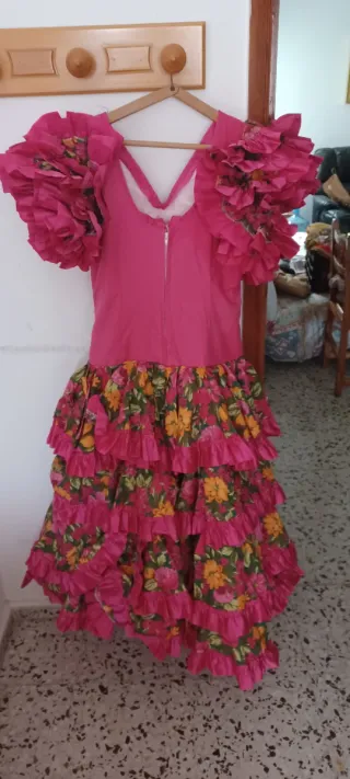 Vestido de sevillana con un estampado floral vibrante. Ideal para fiestas y eventos. Talla 38 2 puestas está nuevo - Diseño con escote en V. - Mangas acampanadas. - Volantes en la falda.