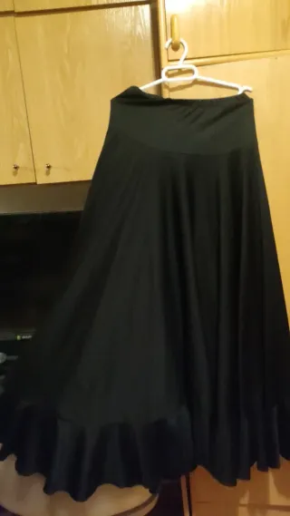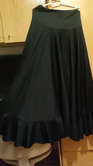 Falda negra con vuelo, ideal para ensayos de sevillanas y flamenco. Varias tallas. - Cintura elástica. - Diseño con volante en el bajo.