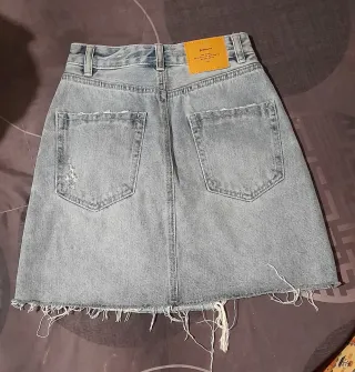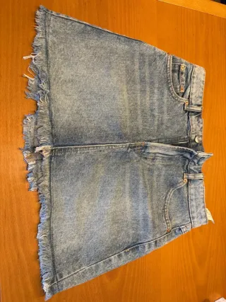 Nuevo sin etiqueta – solo probado, nunca usado fuera. Estado como nuevo. Falda-pantalón vaquera (skort) de Stradivarius, talla EU 32 (UK 4 / US 00). Parte delantera tipo falda con short integrado por dentro, muy cómoda y segura. Color vaquero azul medio, cierre con botón lateral. Ideal para verano, fácil de combinar con camisetas o blusas. Queda mejor en personas de complexión pequeña/delgada. Recomendado para altura aproximada entre 150–155 cm (queda estilo mini).