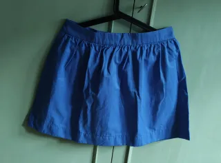 Minifalda de Stradivarius, estilo retro y color azul vibrante. Es una prenda nueva, ideal para añadir un toque de estilo a tu armario. -Diseño fruncido. - Largo mini. - Tejido ligero y cómodo.