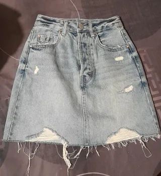 Falda vaquera de Stradivarius con un diseño moderno y desgastado. - Tono azul claro. - Detalle de rotos y deshilachados en el bajo. - Bolsillos delanteros y traseros.