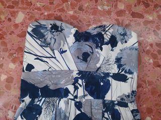 Vestido sin tirantes con un bonito estampado floral. - Diseño strapless. - Estampado de flores en tonos azules y blancos. - Falda con vuelo.