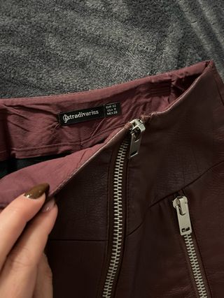 Falda cuero granate Stradivarius Talla L 40