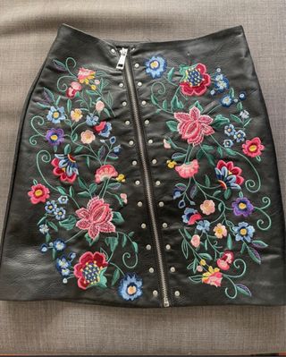 Falda mini polipiel bordada