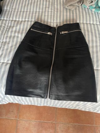 Falda cuero Stradivarius cremallera frontal