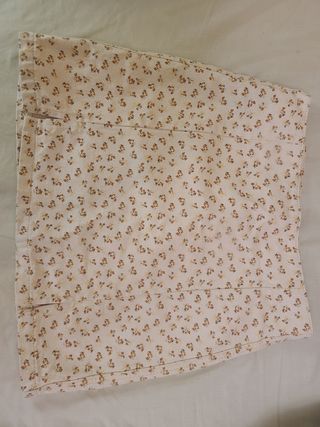 Falda corta con estampado floral. - Diseño de flores en tonos beige y morado. - Bolsillos laterales. Me mudo y necesito desprenderme de ropa y objetos, mira mi perfil por si te puede interesar algo más 😉
