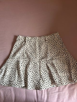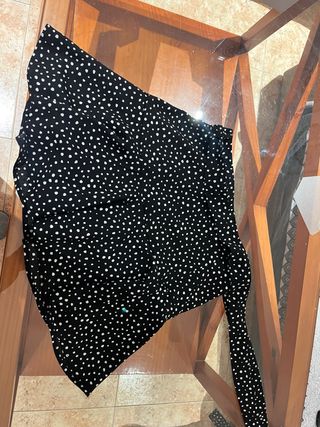 Falda corta de lunares blancos sobre fondo negro. Fruncida vertical. Nunca me la puse. Está nueva.