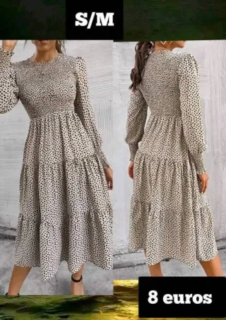 Vestido de manga larga con estampado de lunares. Talla L - Diseño con volantes en la falda. - Cuello redondo. - Tejido ligero y cómodo.