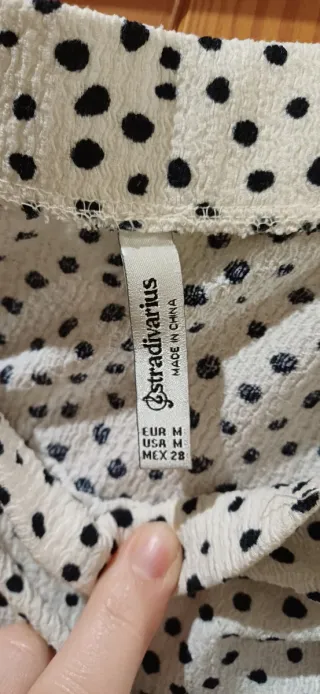 Falda corta de Stradivarius con un diseño de lunares. - Color base blanco con lunares negros. - Cintura elástica. - Detalle fruncido en la parte delantera.