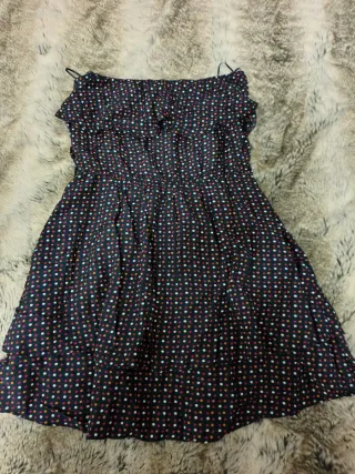Vendo vestido corto con falda fluida. Azul con lunares blancos y de media manga. Marca Stradivarius. Nuevo sin usar