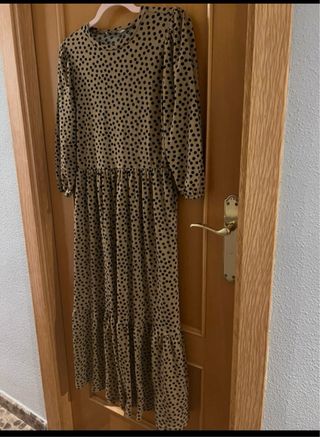 Vestido largo de Stradivarius con estampado de lunares. - Diseño con cuello camisero y botones. - Falda con volantes. - Manga larga.