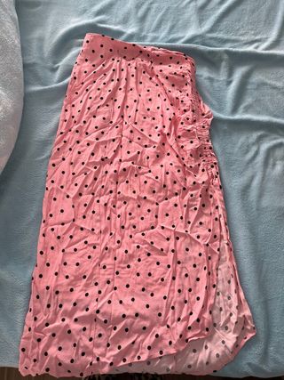 Falda larga de Stradivarius con estampado de lunares. - Color rosa con lunares negros. - Apertura por el centro. - Cremallera trasera - Falda interna