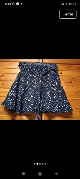 Falda corta con estampado de lunares. - Diseño fruncido. - Talla XS. - Lleva cremallera lateral. - Queda espectacular y que con el fruncido no se nota tripita ni ningún pliegue que siempre nos incomoda. La vendo porque todo el día estoy comprando ropa nueva. Está impoluta, en perfecto estado, como nueva.