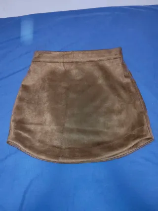 Falda corta de piel sintética. Color marrón claro. Stradivarius. Talla 38. Con cremallera y bolsillos delanteros. Muy bonita. Está en perfecto estado, pero hay un pequeño desperfecto en la parte superior (se aprecia en la quinta imagen) provocado por la percha. ¡ENTRA EN MI PERFIL PARA VER OTROS PRODUCTOS EN OFERTA!