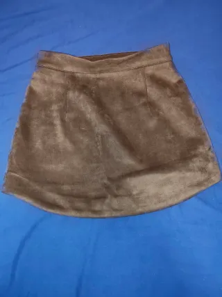 Falda corta de ante sintético en color marrón. Tiene una cintura elástica para mayor comodidad. - Material: Ante sintético. - Diseño: Corte recto. - Cintura: Elástica.
