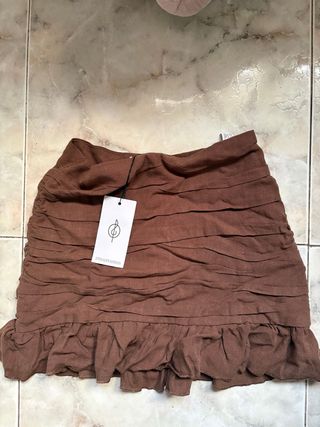 Minifalda de Stradivarius en color marrón. Presenta un diseño muy juvenil y favorecedor - Detalle de cintura con hebilla. - Cierre con hebilla decorativa. - tejido algodon tacto suave - es de stradivarius pero le quité la etiqueta porque me molestaba