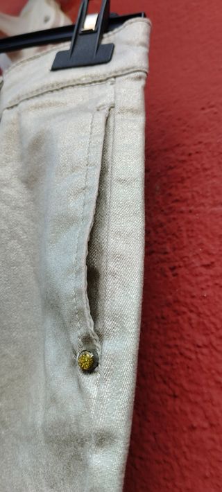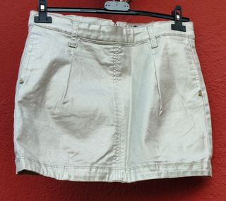 Preciosa minifalda. Es de color plateado. - Corte clásico. - Tiene bolsillos. - Cierre con cremallera. - Un poco elastica