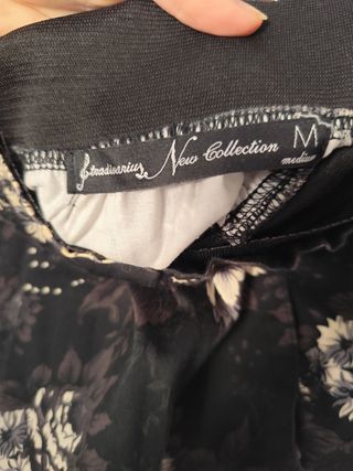 Minifalda negra con estampado floral de la talla M y de la marca STRADIVARIUS. Tiene elástico en la cintura. En muy buen estado.