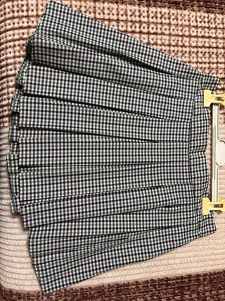Falda de estilo colegial con estampado de cuadros. - Diseño plisado. - Combinación de colores verde, negro y multicolor. - Falda corta. - Cierre de cremallera al lado. - Solo ha sido usada 1 vez.