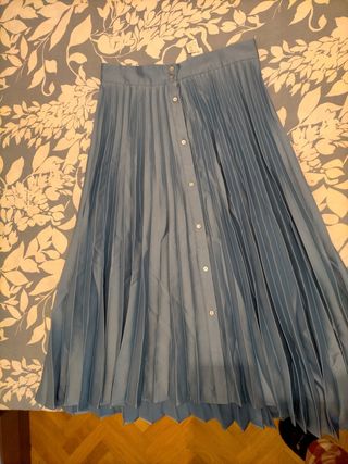 Falda larga con tablas y botones. - Diseño plisado. - Cierre de botones. - Largo midi.