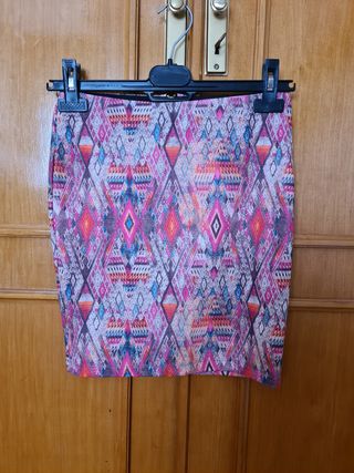 Poco uso, da poca talla, elástica, estampado geométrico, con goma cintura y cremallera trasera. De Stradivarius Talla 36. Como nueva poco uso.