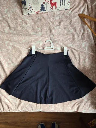 Falda de Stradivarius en color azul marino. - Talla 38. - Diseño acampanado.