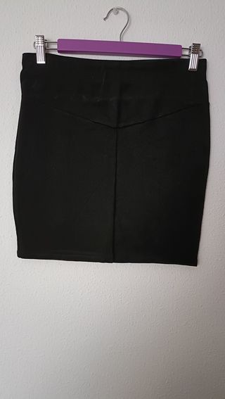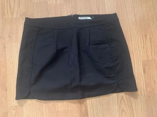 Falda corta de Stradivarius en color negro. - Talla M. - Diseño con bolsillos. - Cremallera en la parte trasera. - Bajo con abertura lateral.