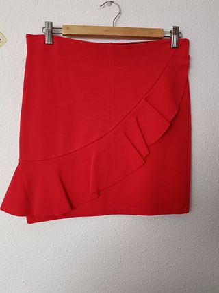 Falda elástica con un diseño moderno y femenino. - Detalle de volante. - Tejido elástico para mayor comodidad.