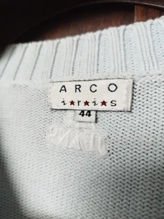 Conjunto de falda vaquera y suéter de algodón. - Falda vaquera con diseño de retazos en diferentes tonos de azul y blanco. - Suéter de algodón de manga francesa con cuello en V y detalle de botones Se venden también por separado -El suéter marca talla 44 pero da muy poca talla coincidiría con la 38-40 El precio de cada pieza es de 7 euros