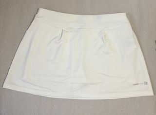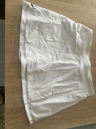 Falda de tenis blanca, ideal para la práctica deportiva. Diseño cómodo y ligero. - Cintura elástica. - Tejido transpirable. - Logo de la marca en la parte inferior.
