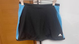 Falda deportiva de la marca Adidas en color azul. - Diseño moderno y funcional. - Tejido ligero y transpirable. - Cintura elástica para mayor comodidad. - Bolsillos prácticos.