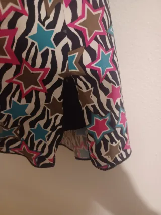 Falda deportiva con estampado divertido. - Diseño con fondo de cebra y estrellas. - Cintura elástica negra. - Ribete inferior en contraste.