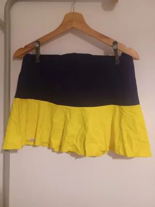 Conjunto de faldas deportivas Luanvi, ideales para tenis o pádel. Combinan azul marino y amarillo. - Diseño con logo en la parte inferior. - Cintura elástica para mayor comodidad. Tengo 4 faldas 2-S 2-L Precio por unidad .