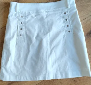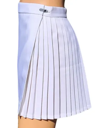 Falda de tenis de color blanco, ideal para la práctica deportiva. - Diseño con botones decorativos en la parte frontal. - Cintura con trabillas para cinturón.