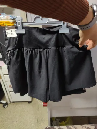 Falda pantalón deportiva de la marca Domyos. - Diseño en color negro. - Talla XL (42/14). - Cintura elástica con fruncido.